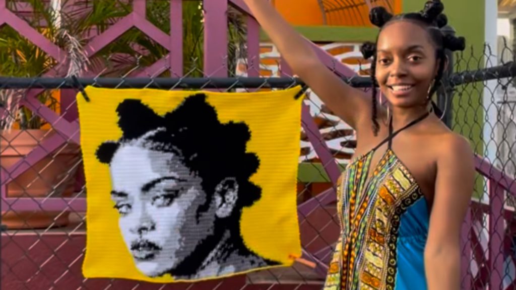 To commemorate the upcoming 60th anniversary of Barbados’ Independence, Abigail is transforming yarn into legacy. Her inaugural piece was an amazing 10,000-stitch tribute to Sir Garfield Sobers. As her first-ever yarn portrait, the piece serves as a massive testament to the labor and precision required to turn a single thread into a recognizable face of excellence.