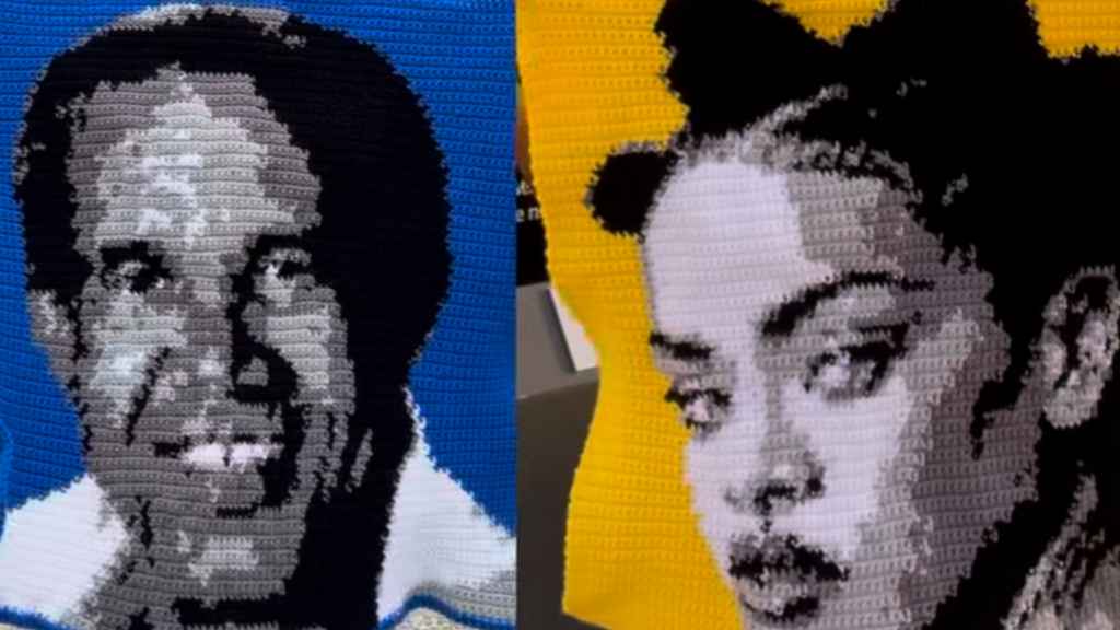 While other artists might struggle to source specific yarn colors, Abigail’s approach is as strategic as it is aesthetic. To ensure the series remains cohesive and on point for the national celebrations, she made a deliberate design choice, every hero’s face consisting of various shades black and white tones, set against a deep blue or golden yellow representing the colours of the Barbadian flag.